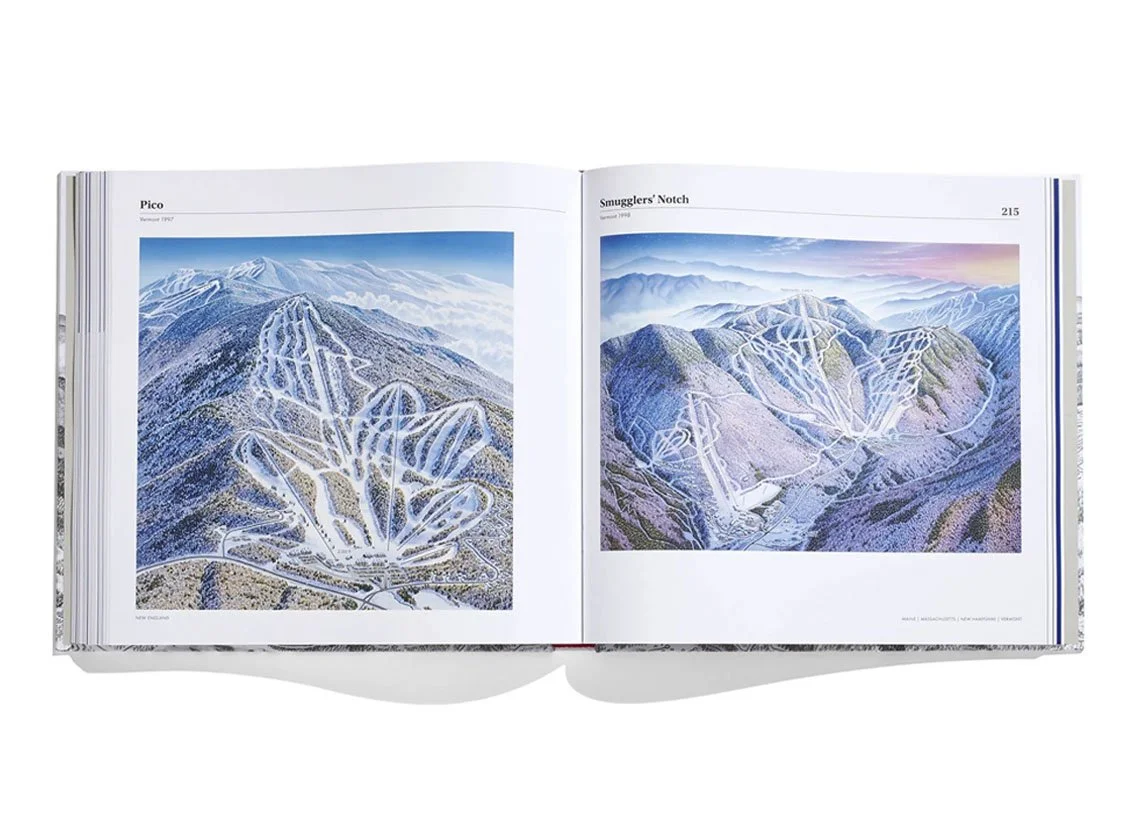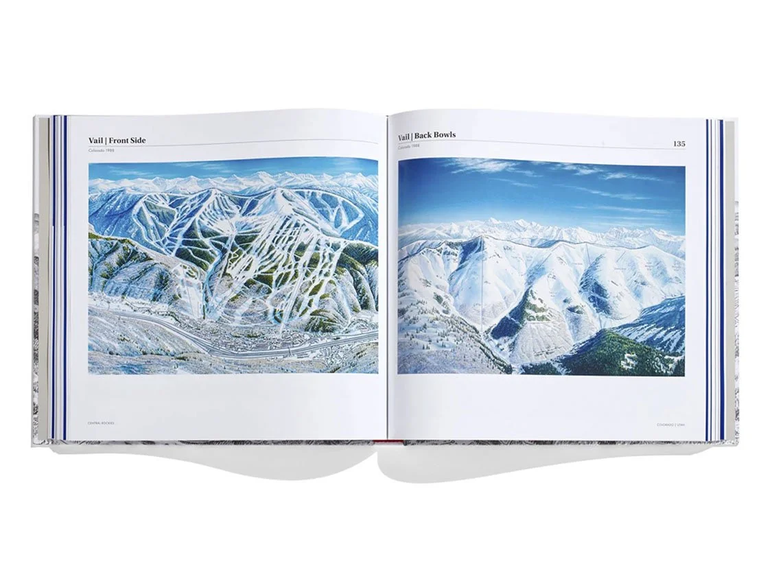 In this book you will find full page, stunning images of his art, documenting the world’s most iconic ski areas including Alta, Arapahoe Basin, Aspen, Breckenridge, Big Sky, Deer Valley, Heavenly, Jackson Hole, Jay Peak, Killington, Kirkwood, Lake Louise, Mammoth, Mont Tremblant, Mt. Bachelor, Park City, Revelstoke, Snowbird, Squaw Valley, Stowe, Sugarloaf, Sun Valley, Taos, Telluride, Whistler Blackcomb, just to name a few.